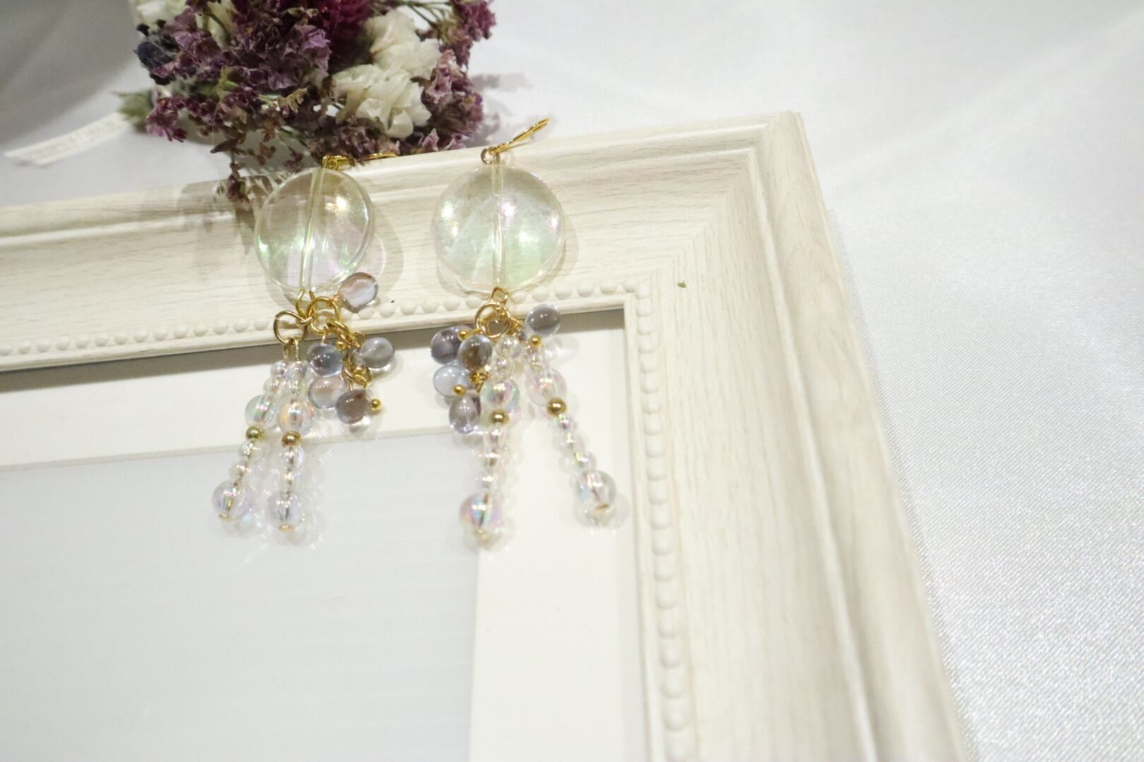 大ぶりなんですが、ゆらゆらとビーズが揺れるピアスがとても女性らしくて可愛いです。