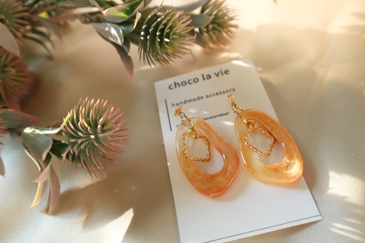 オレンジブラウン×ゴールドピアス
