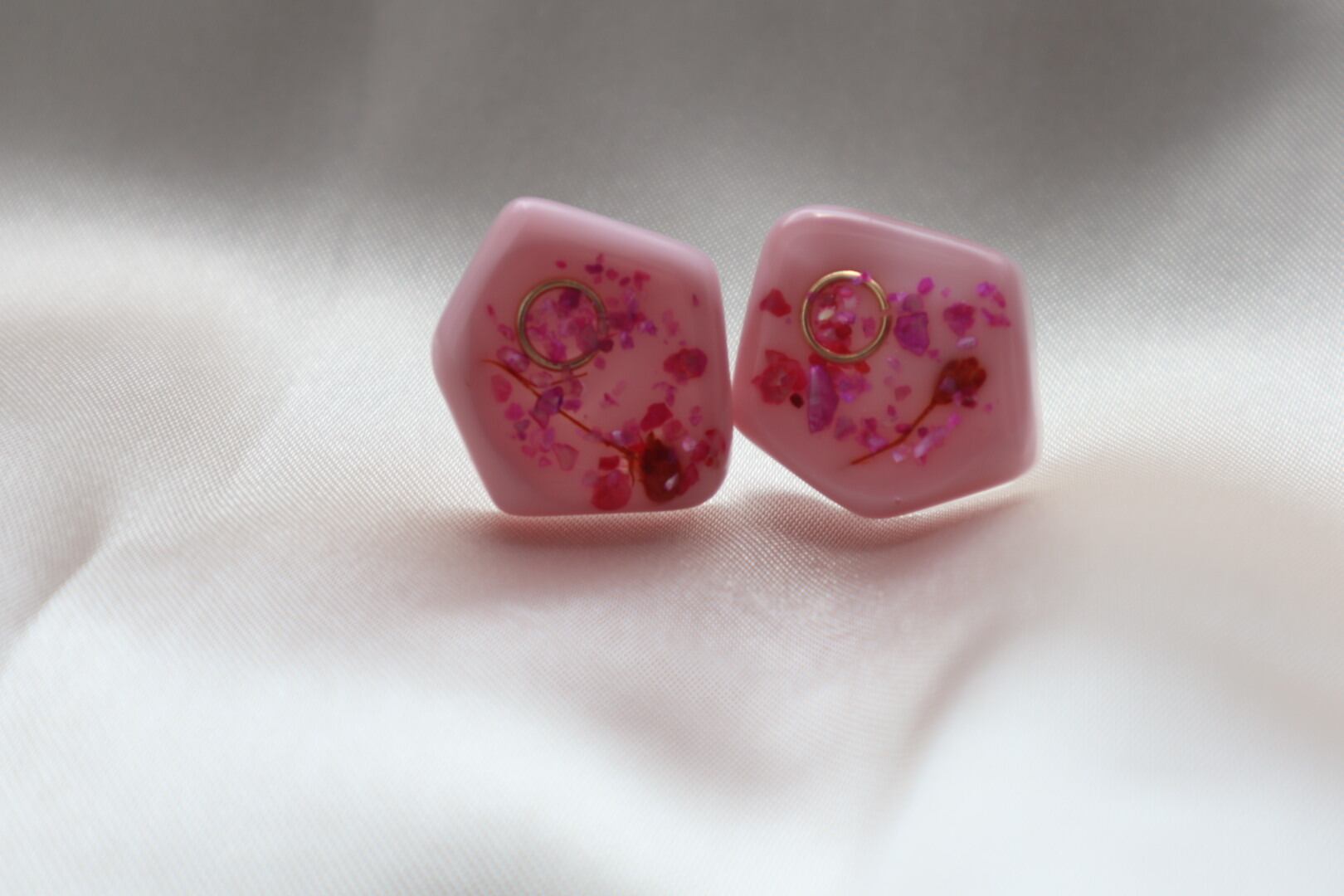 ピンク×ドライフラワーピアス
